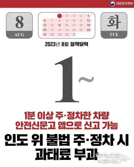 스페이스뉴스 스페이스뉴스 기자 | 인도 위 불법 주·정차 시 과태료 부과(8월 1일부터)