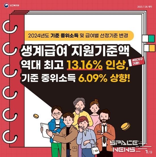 스페이스뉴스 스페이스뉴스 기자 | 2024년도 기준 중위소득 및 각 급여별 선정기준이 변경됩니다!