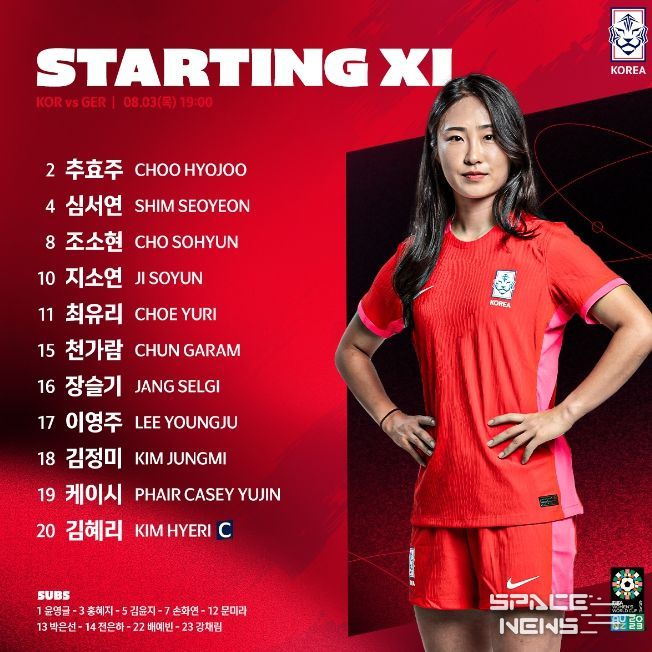 스페이스뉴스 스페이스뉴스 기자 | 독일과의 조별리그 최종전에 나설 여자 축구 국가대표팀의 명단이 발표됐다.