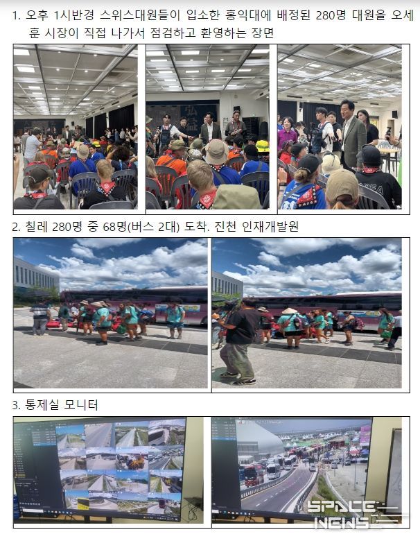 비상대책반은 전날 △샤워시설 △화장실 △식당 등을 갖춘 △즉시 사용 가능한 숙소 128곳을 확보한 뒤,밤샘작업을 거쳐 숙소를 국가별로 배분하고,전국에서 확보한 버스 1014대를 현장에 투입해, 8일 오전 10시부터 순차적으로 참가자들을 대피시키기 시작했다.