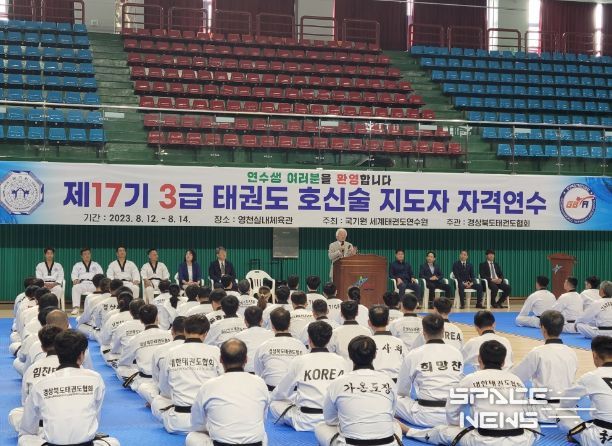 스페이스뉴스 스페이스뉴스 기자 | 국기원(원장 이동섭)이 주최하고 경상북도태권도협회가 주관한 제17기 3급 태권도 호신술 지도자 자격연수가 8월 12일부터 14일까지 참가자들의 열띤 호응 속에 경북 영천실내체육관에서 열렸다.