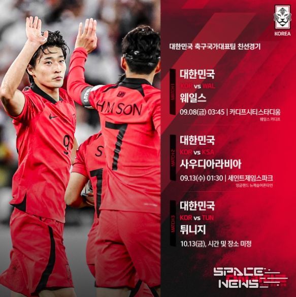 스페이스뉴스 스페이스뉴스 기자 | 축구 국가대표팀의 9월 유럽 원정경기 일정이 확정됐다. 10월 친선A매치 1차전 계획도 함께 발표됐다.