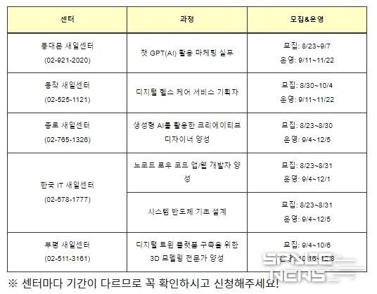 스페이스뉴스 스페이스뉴스 기자 | 경단녀 재취업 돕는 ‘새일센터’에서 신기술 직업교육 훈련생을 모집합니다. 전국 5개 새일센터에서 AI, 반도체 기초 설계, 바이오·헬스, 디지털 트윈 등 4개 분야 6개 과정으로 나뉘어 진행됩니다.
