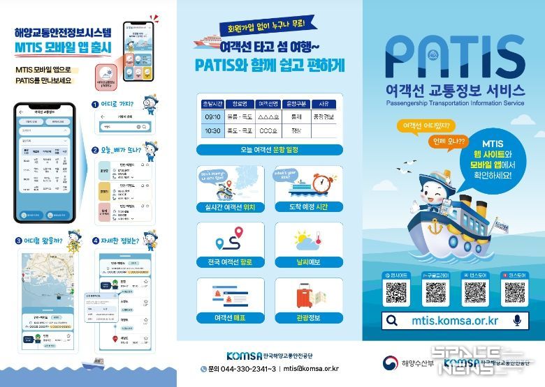 ‘여객선 교통정보 서비스(PATIS)’는 여객선의 출발·도착 예정 시각, 위치정보 등을 실시간으로 확인할 수 있는 서비스이다. 해양수산부와 한국해양교통안전공단이 함께 개발하여 지난 4월부터 해양교통안전정보시스템(MTIS) 누리집(mtis.komsa.or.kr)에 서비스 제공 기능을 추가했으며, 이달 초에 모바일 앱 개발을 마치고 모바일에서도 서비스를 제공할 수 있게 됐다.