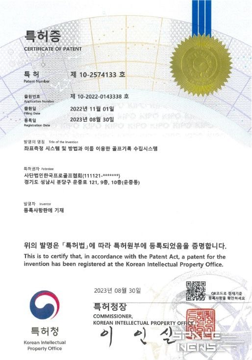 스페이스뉴스 스페이스뉴스 기자 | KPGA는 지난 8월 30일 '좌표 측정 시스템 및 방법과 이를 이용한 골프기록 수집 시스템'이라는 명칭으로 특허청으로부터 특허를 취득했다. KPGA는 해당 기술을 활용해 팬들이 경기를 더욱 실감나게 즐길 수 있도록 리더보드를 구축했다.