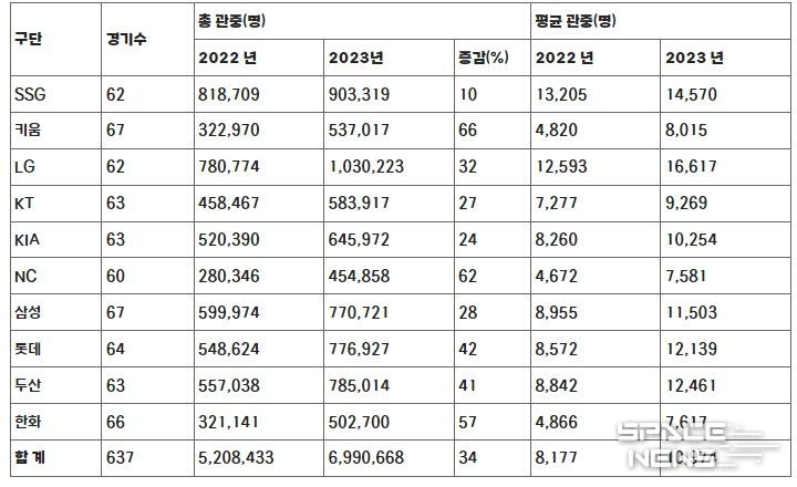 스페이스뉴스 스페이스뉴스 기자 | 2023 신한은행 SOL KBO 리그가 2019시즌 이후 4년만에 700만 관중 돌파를 눈 앞에 두고 있다.