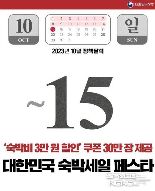 추석 연휴와 함께하는 대한민국 숙박세일 페스타를 10월 15일까지 진행합니다. 대한민국 숙박세일 페스타는 온라인여행사를 통해 5만 원 이상 숙박시설 이용 시 3만 원 할인 쿠폰을 제공하는 행사인데요. 44개 온라인여행사와 3만 여개 국내 등록 숙박시설이 참여하여 추석 황금연휴에 쿠폰 30만 장을 배포합니다.