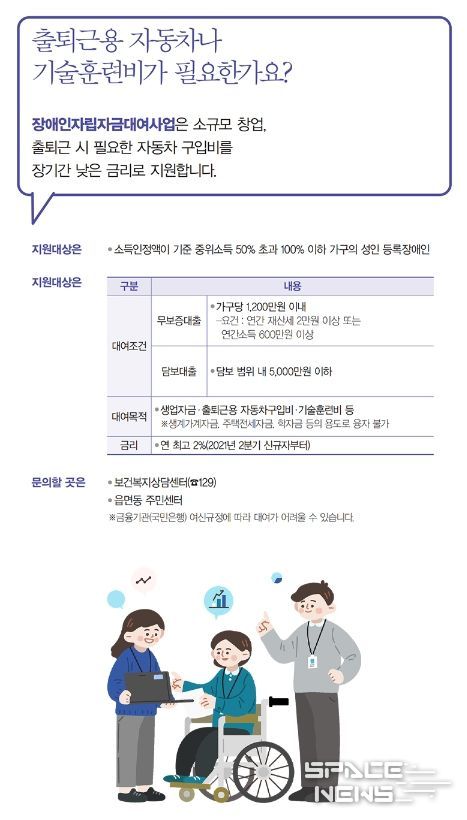 스페이스뉴스 스페이스뉴스 기자 | 장애인자립자금대여사업은 소규모 창업, 출퇴근 시 필요한 자동차 구입비를 장기간 낮은 금리로 지원합니다.