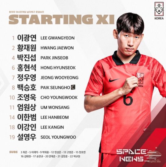 황 감독은 가용 자원 중 최정예 멤버를 모두 투입했다. 중국과의 8강전에서 교체로 들어왔던 5명 중 4명(이강인, 정우영, 엄원상, 설영우)이 이날 경기에는 선발로 나섰다.