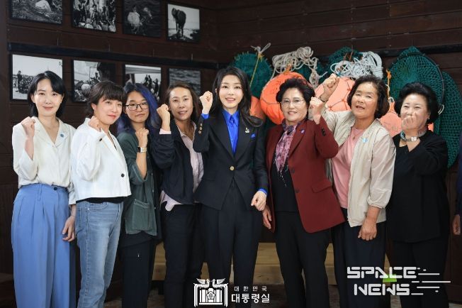 스페이스뉴스 스페이스뉴스 기자 | 김건희 여사는 10월 6일 오후 제주시 종달어촌계 해녀 휴게실에서 제주지역 해녀 어업인들을 만났다. 오늘 만남에는 제주 해녀협회 관계자, 서울에서 귀어한 젊은 해녀, 제주에서 오랫동안 해녀 어업에 종사한 중·장년 해녀 등 10여 명이 자리를 함께했다. 김 여사는 오랜 세월 바다와 함께 살아온 해녀들의 삶과 애환을 듣고, 어려운 여건에서도 전통을 지켜온 해녀들에게 존경과 감사를 표했다. 현재 해녀와 제주 해녀어업·문화는 각각 국가무형문화재 제132호, 국가중요어업유산 제1호, 유네스코 인류무형문화유산으로 지정돼 있다.