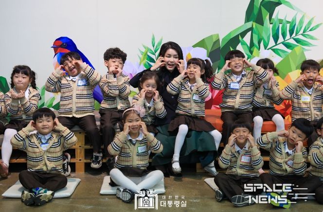김 여사는 광주디자인비엔날레 연계 체험학습 프로그램 ‘더 리틀 큐레이터’ 행사에 참여한 20여 명의 유치원 아이들과도 만났다.