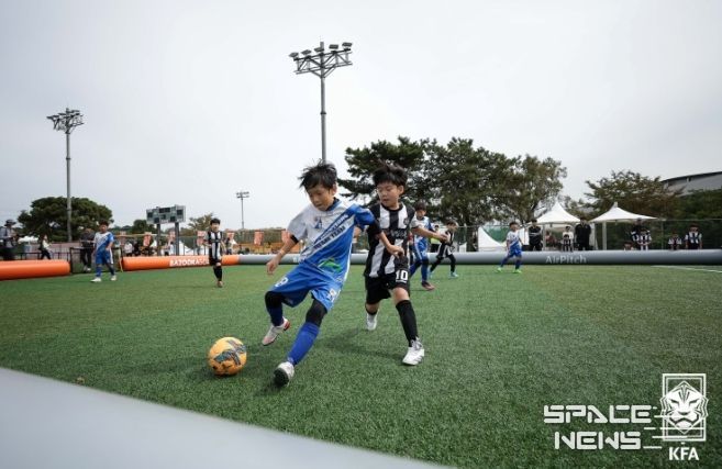 축구 경기는 15m x 20m의 규격의 에어피치에서 진행됐다. 이는 지역별 축구 인적 인프라 격차를 해소하기 위해 스몰사이즈 경기를 시범 도입했다. 작은 공간에서 진행됐지만, 아이들은 치열한 경기를 펼치며 승부욕을 보여줬다. 7일 열린 U-10 경기는 총 21팀이 참여했으며, 경기 시간은 10분이었다. 경기는 4인제로 진행됐고, 종종 여자아이들과 남자아이들이 함께 경기하는 재밌는 모습도 눈에 띄었다.