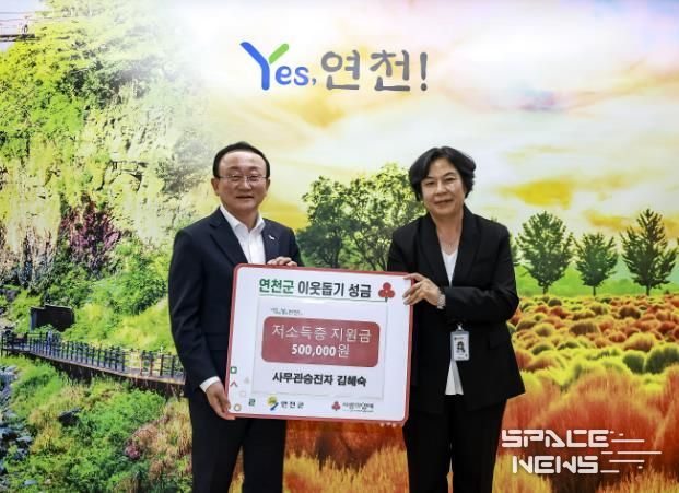스페이스뉴스 스페이스뉴스 기자 | 연천군은 지난 25일 군수실에서 사무관 교육을 마친 김혜숙 미산면장에게 임용장을 수여하고, 이웃돕기 성금을 기탁하는 시간을 가졌다고 밝혔다.