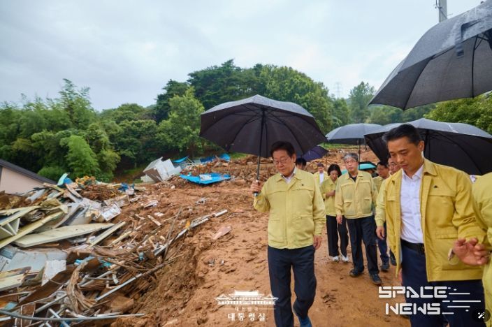 스페이스뉴스 스페이스뉴스 기자 | 이재명 대통령은 21일 오후 기록적인 집중호우로 큰 피해를 입은 경남 산청군을 직접 찾아 피해 복구 상황을 점검했다고 강유정 대변인이 브리핑에서 밝혔다.