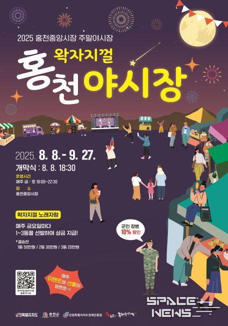 스페이스뉴스 스페이스뉴스 기자 | 홍천군은 ‘왁자지껄 홍천 야시장’을 8월 8일 오후 6시 30분 개장식을 시작으로 9월 27일까지 홍천 중앙시장 동문 앞 거리에서 매주 금요일과 토요일에 연다.