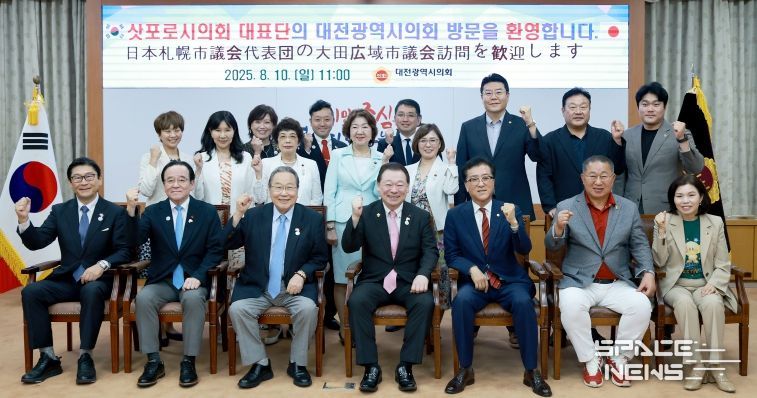 스페이스뉴스 스페이스뉴스 기자 | 대전시의회는 10일 시의회 소통실에서 일본 삿포로시의회 오사나이 나오야 의장을 비롯해 총 14명으로 구성된 삿포로시의회 대표단을 접견하고, 자매도시 간 교류 확대와 협력 방안을 논의했다.