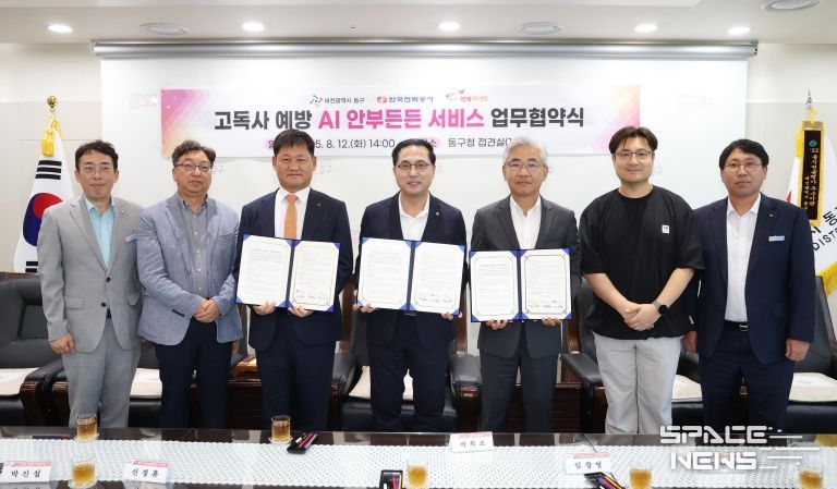 스페이스뉴스 스페이스뉴스 기자 | 대전 동구는 12일 구청장 접견실에서 한국전력공사 대전세종충남본부(본부장 신경휴)‧행복커넥트(이사장 엄종환)와 고독사 예방을 위한 ‘AI 안부든든 서비스’ 업무협약을 체결했다고 밝혔다.