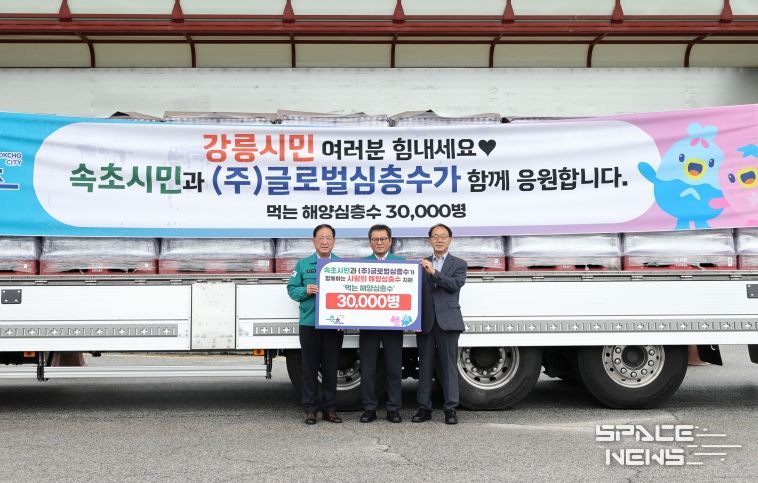 스페이스뉴스 스페이스뉴스 기자 | 지속되는 가뭄으로 강릉시와 시민들이 물 절약에 힘쓰고 있는 가운데, 14일 오전 11시 30분 이웃 도시인 속초시(시장 이병선)에서 생수 3만 병(3천만 원 상당)을 전달하며 온정을 전했다.