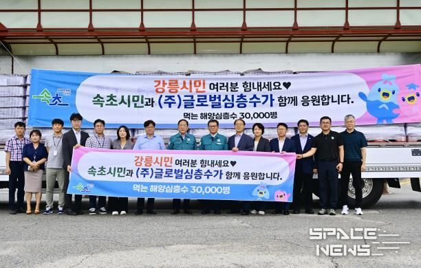 스페이스뉴스 스페이스뉴스 기자 | 속초시는 최근 지속된 가뭄으로 식수난을 겪는 강릉시 주민들을 위해 ㈜글로벌심층수에서 생산하는‘먹는 해양심층수’ 3만 병(3천만 원 상당)을 긴급 지원했다.
