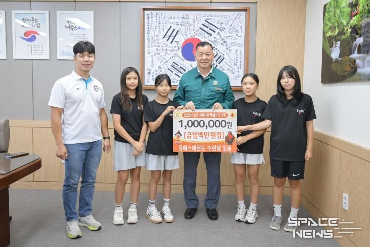 스페이스뉴스 스페이스뉴스 기자 | 공주시는 지난 19일 시청 상황실에서 유에스태권도 수련생들이 집중호우 피해를 입은 이웃들을 돕기 위해 성금 100만 원을 기탁했다고 밝혔다.