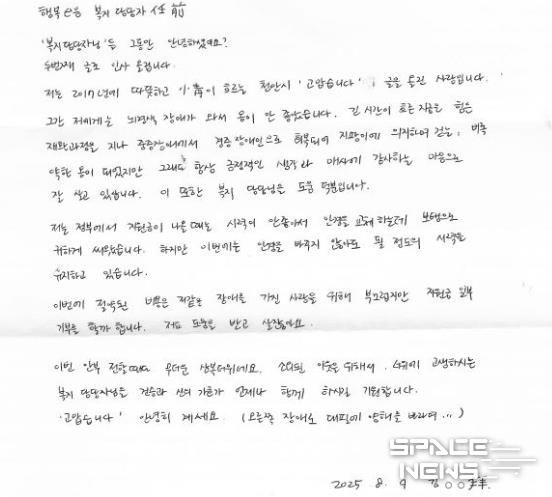 스페이스뉴스 스페이스뉴스 기자 | 홀로 사는 70대 어르신이 천안시에 시 복지 정책에 대한 감사의 뜻을 담은 편지와 함께 취약계층을 위한 후원금을 전달해 눈길을 끌고 있다.