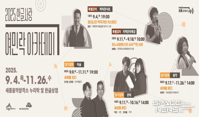 스페이스뉴스 스페이스뉴스 기자 | 세종시문화관광재단은 20일부터 2025년 하반기 한글사랑 여민락 아카데미 수강생을 모집한다.
