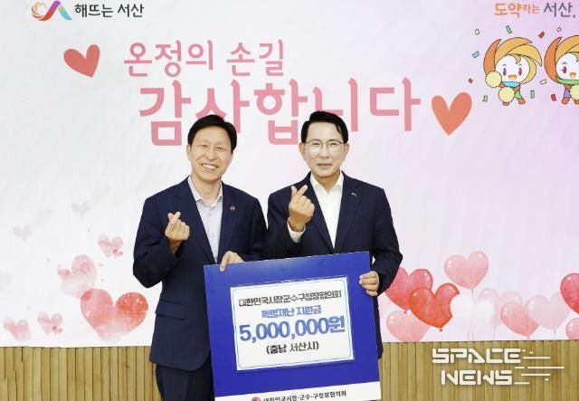 스페이스뉴스 스페이스뉴스 기자 | 충남 서산시는 지난 20일 대한민국시장군수구청장협의회가 집중호우 피해 성금으로 5백만 원을 기탁했다고 밝혔다.