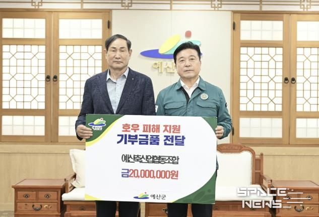 스페이스뉴스 스페이스뉴스 기자 | 예산군축산업협동조합은 최근 집중호우로 피해를 입은 예산군 수해복구를 돕기 위해 2000만원을 예산군에 기탁했다고 21일 밝혔다.