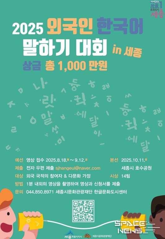 스페이스뉴스 스페이스뉴스 기자 | 세종특별자치시가 한글문화도시 정체성 확립과 한글문화 확산을 위해 ‘외국인 한국어 말하기 대회’를 개최한다고 22일 밝혔다.
