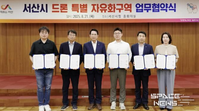 스페이스뉴스 스페이스뉴스 기자 | 충남 서산시는 지난 21일 시청 중회의실에서 ‘드론 특별자유화 구역 업무협약식’을 개최했다고 밝혔다.