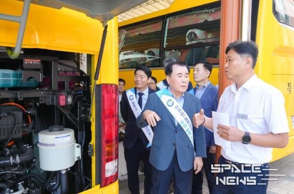 김지철 교육감은 현장에서 차량 외관과 주요 안전장치를 직접 점검하고, 학생들의 등·하교 동선 및 운행 안전성 등을 꼼꼼히 확인했다.