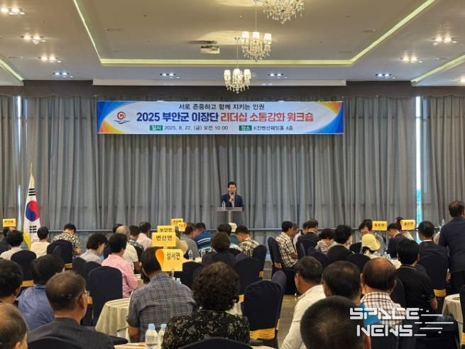 스페이스뉴스 스페이스뉴스 기자 | 부안군은 22일 K컨벤션웨딩홀에서 관내 13개 읍․면 이장 150여명이 참석한 가운데, ‘2025년 부안군 이장단 리더십 소통강화 워크숍’을 성황리에 개최했다.