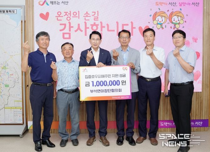 스페이스뉴스 스페이스뉴스 기자 | 충남 서산시는 22일 부석면이장단협의회가 집중호우로 어려움을 겪고 있는 주민을 위해 100만 원의 성금을 전달했다고 밝혔다.