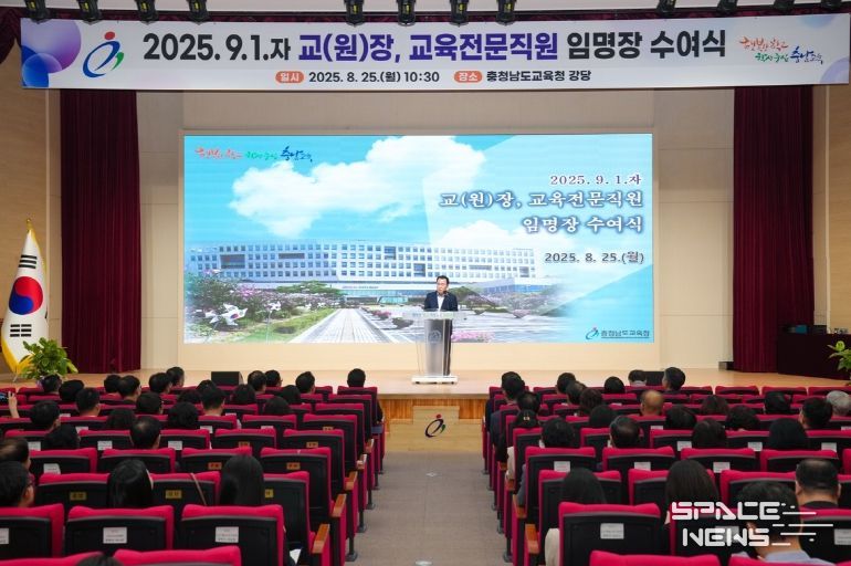 스페이스뉴스 스페이스뉴스 기자 | 충남교육청은 지난 25일 2025.9.1.자 인사 발령에 따른 교(원)장, 교육전문직원에 대하여 임명장을 25일 도교육청 대강당에서 수여했다.