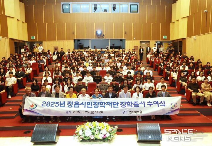 스페이스뉴스 스페이스뉴스 기자 | 정읍시민장학재단이 지난 25일 연지아트홀에서 ‘2025년 정읍시민장학재단 장학생 장학증서 수여식’을 열고 장학생 190명에게 총 4억 원을 전달했다.