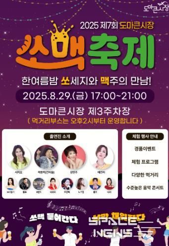 스페이스뉴스 스페이스뉴스 기자 | 대전 서구는 8월 29일 도마큰시장 제3주차장에서 ‘2025년 제7회 도마큰시장 쏘맥축제’를 개최한다고 전했다.