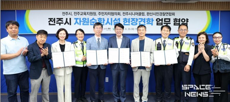 시는 26일 전주교육지원청(교육장 김정기), 전주시주민자치협의회(회장 강민철), 전주시니어클럽(관장 김효춘), 완산시민경찰연합회(회장 성완오)와 ‘지자체와 학교, 지역사회가 함께 협력하는 자원순환시설 견학프로그램’ 운영을 위한 업무협약을 체결했다.