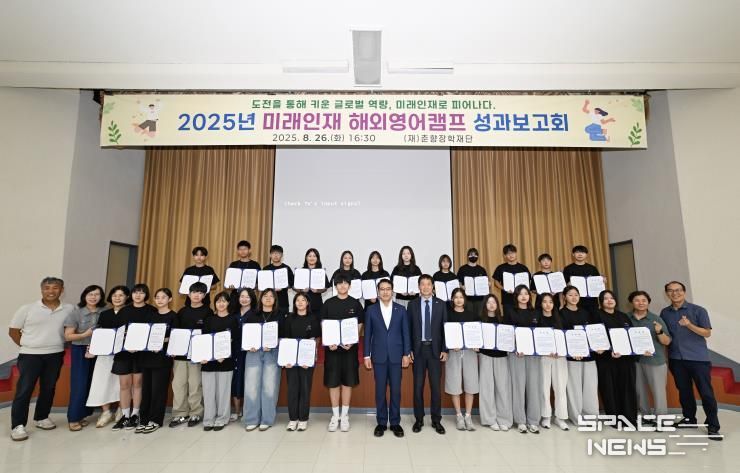 스페이스뉴스 스페이스뉴스 기자 | 춘향장학재단은 지난 8월 26일 남원시청 강당에서 '2025년 미래인재 해외영어캠프 성과보고회'를 성황리에 개최했다.