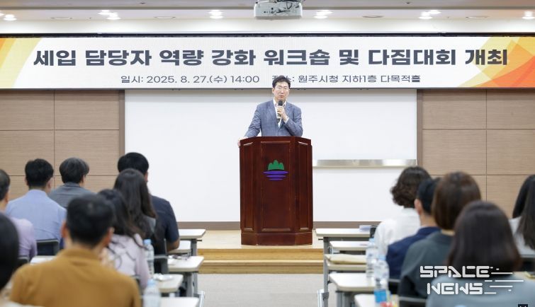 스페이스뉴스 스페이스뉴스 기자 | 원주시는 8월 27일 원주시청 지하 1층 다목적홀에서 재정국 신설을 기념하고, 지방세입 담당 공무원의 업무역량을 강화하기 위한 지방세입담당 공무원 업무역량강화 워크숍 및 다짐대회를 개최했다.