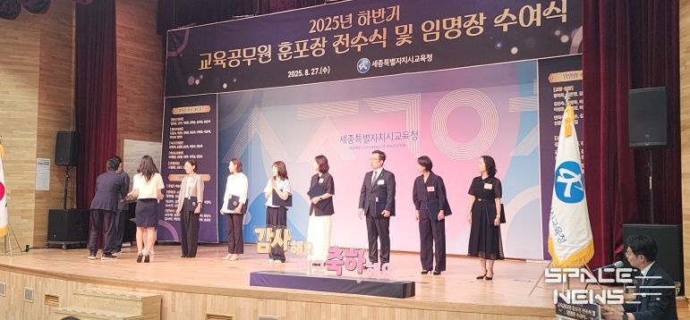 스페이스뉴스 스페이스뉴스 기자 | 세종특별자치시교육청은 8월 27일에 본청 2층 대강당에서 8월 말 퇴직 교원 27명에 대한 훈·포장 전수식과 9월 1일 자 인사발령에 따른 교육공무원 84명에 대한 임명장 수여식을 개최했다.