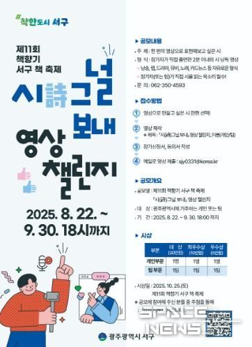 서구는 9월 한달간 ‘시(詩)그널 보내’ 영상 챌린지를 비롯해 ‘독서의 달’ 프로그램과 북콘서트 등을 운영한다고 밝혔다.