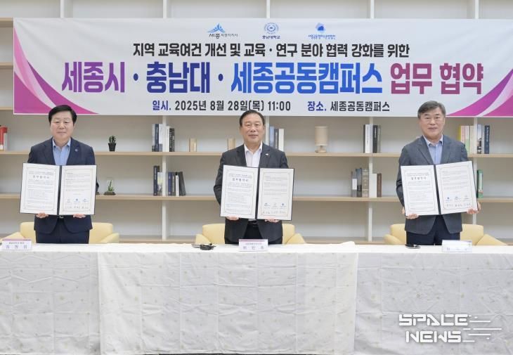 스페이스뉴스 스페이스뉴스 기자 | 세종특별자치시가 충남대학교, 세종공동캠퍼스운영법인과 함께 정부의 ‘서울대 10개 만들기’ 정책에 걸맞는 지역 교육 환경을 공동 조성하기로 했다.
