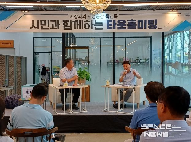 스페이스뉴스 스페이스뉴스 기자 | 군산시가 28일 전북사회적경제혁신타운에 위치한 ‘신관동 여놀’에서'시민과 함께, 다시 뛰는 군산 경제'주제로 타운홀 미팅을 개최했다.