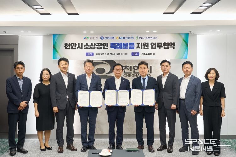 스페이스뉴스 스페이스뉴스 기자 | 천안시는 28일 농협은행, 신한은행, 충남신용보증재단과 함께 ‘2025년 소상공인 특례보증 업무협약’을 체결했다.
