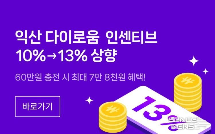 스페이스뉴스 스페이스뉴스 기자 | 익산시가 지역사랑상품권 '다이로움' 인센티브를 확대해 지역경제에 활기를 불어넣는다.