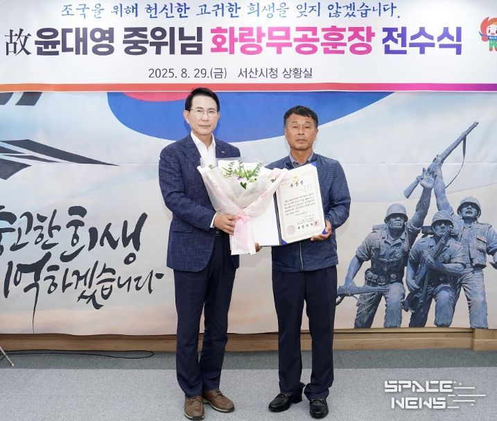 스페이스뉴스 스페이스뉴스 기자 | 충남 서산시는 29일 시청 상황실에서 6.25 참전유공자 고(故) 윤대영 중위의 화랑무공훈장증 전수식을 개최했다고 밝혔다.