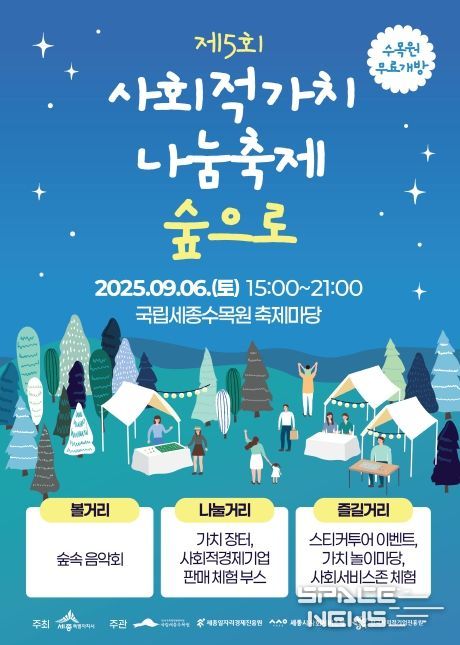스페이스뉴스 스페이스뉴스 기자 | 세종일자리경제진흥원은 9월 6일 토요일 ‘제5회 사회적가치 나눔축제 숲으로’를 개최한다고 밝혔다.