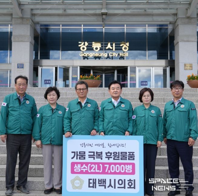 스페이스뉴스 스페이스뉴스 기자 | 태백시의회은 1일 강릉시 가뭄 극복을 위하여 의원들과 직원들이 모금한 성금 등으로 생수(2L) 7,000병을 기탁했습니다.