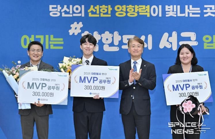 스페이스뉴스 스페이스뉴스 기자 | 광주광역시 서구가 올해 3분기‘MVP 공무원’으로 경제과 홍석기 서구소상공인경영지원센터장, 기후환경과 최은지 주무관, 세무1과 박영준 주무관을 선정했다.