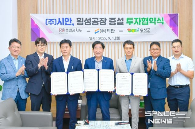 스페이스뉴스 스페이스뉴스 기자 | 횡성군과 강원특별자치도는 1일 횡성군청에서 ㈜시안과 횡성공장 증설 투자협약을 체결했다.